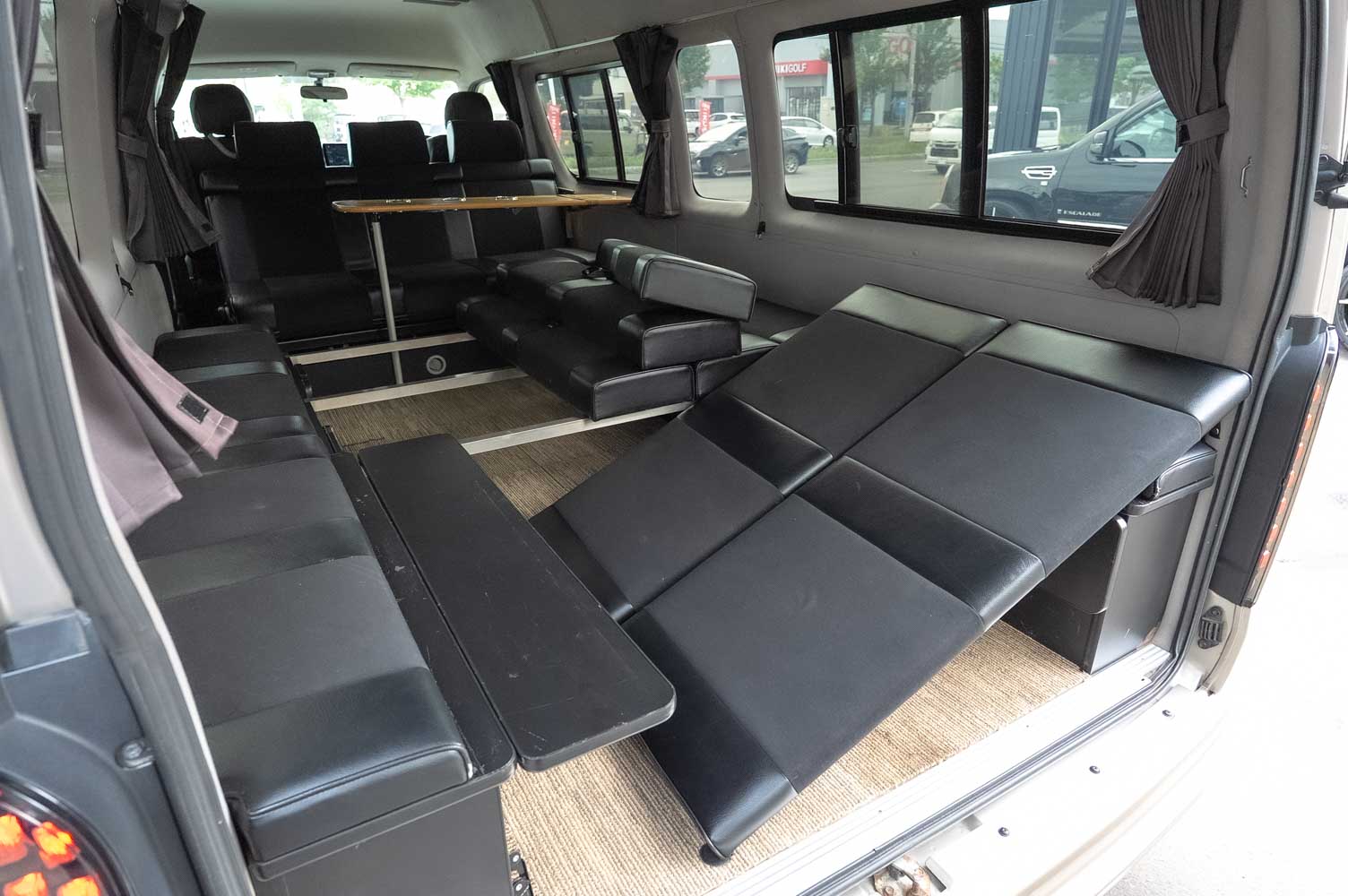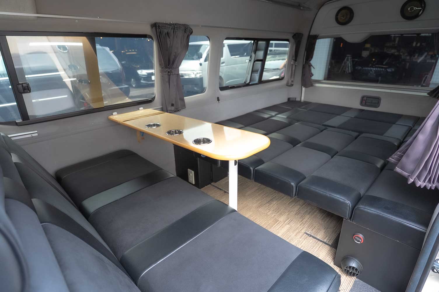 | 詳細情報 | ▶キャンピング車 ▶VALDフルエアロ ▶UIビークル足廻り ▶226K改 登録 ▶顔面チェンジ ▶フルフラットキット ▶LEDテールレンズ ▶社外20インチアルミホイール ▶パナソニック フローティングカーナビ CN-F1XD ▶カロッツェリアリアスピーカー ▶多彩なシートアレンジ テーブルも完備 ▶カーテン ▶ETC |